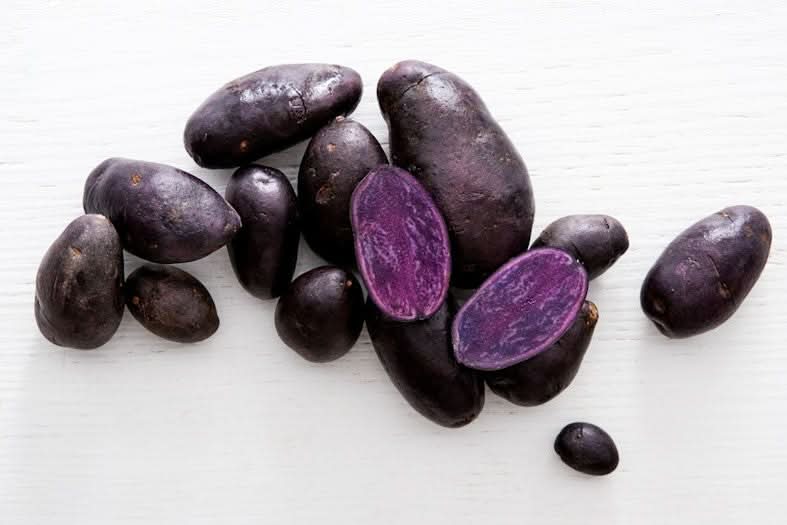 Delikatesse: sehr schmackhafte, vorwiegend festkochende alte Kartoffelsorte mit blauem Fruchtfleisch. Reich an Anthocyanen. Das blau gemaserte, festkochende Fleisch macht diese dekorative Sorte hervorragend geeignet für Bratkartoffeln, Pellkartoffeln, Salzkartoffeln und bunte Salate!