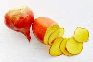 Die auffällige gelbe Farbe bringt Farbe auf deinen Teller – und das nicht nur optisch: Ihr zartes, saftiges Fleisch ist ideal zum Kochen, Backen oder roh im Salat. Milder und süßlicher als rote Bete, perfekt für kreative und feine Gerichte. 🥗✨