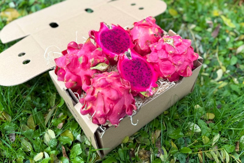 Feuerrot, saftig, tropisch – unsere rote Drachenfrucht aus Indonesien ist ein Geschmackserlebnis und ein Farbwunder.
