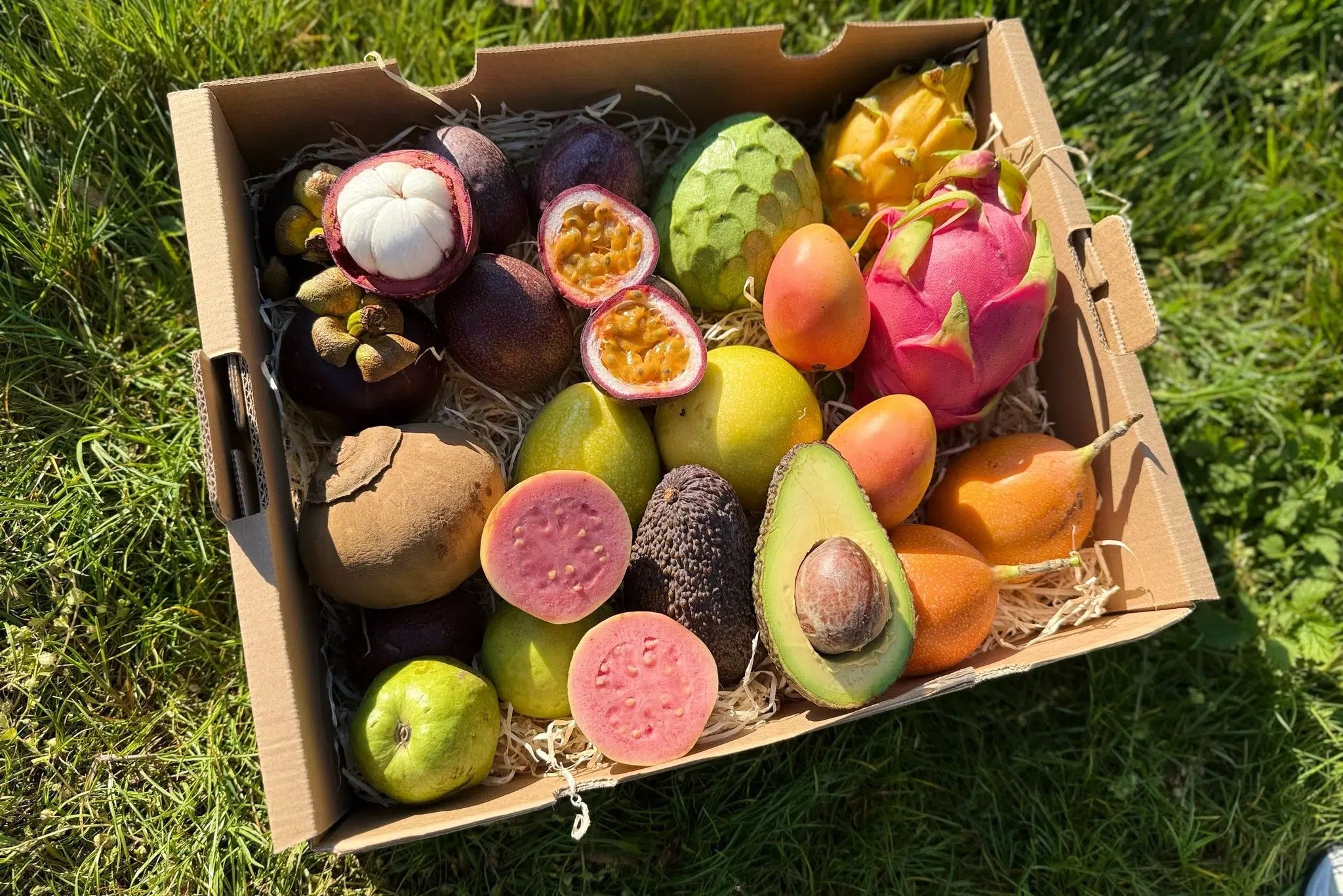 Unsere Exotische Probierbox (klein & groß) vereint eine sensationelle Vielfalt tropischer Früchte, die du so im Handel kaum findest:
