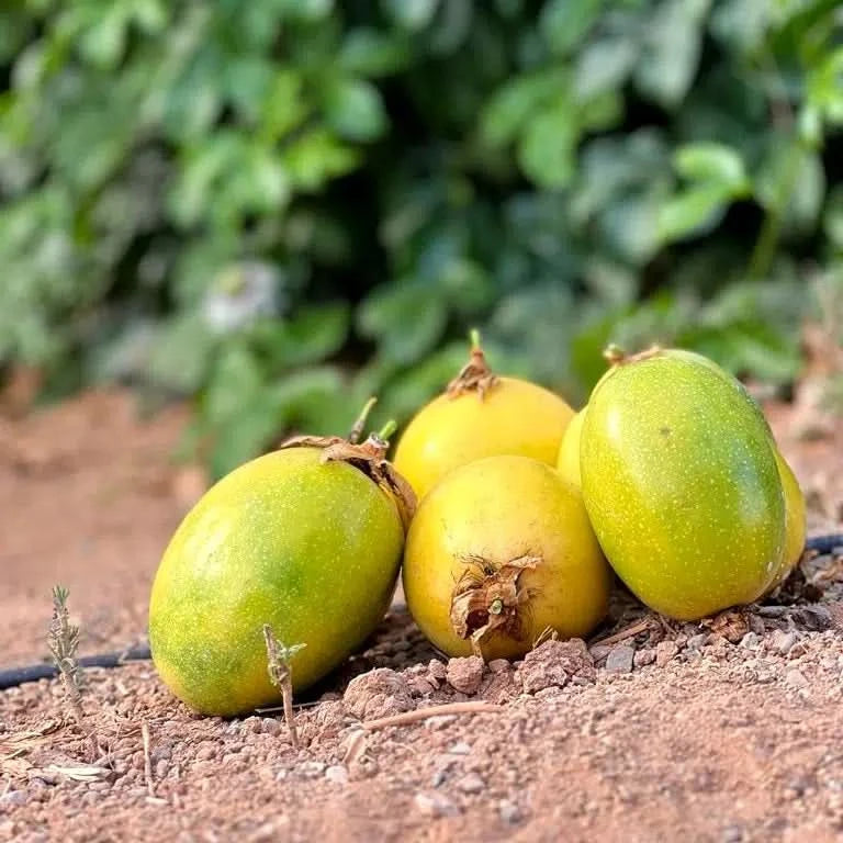 👉 Granadilla: Kommt bereits essreif bei dir an. Die glatte Schale bleibt glatt — das ist normal. Einfach aufbrechen und das aromatische Fruchtfleisch genießen.
