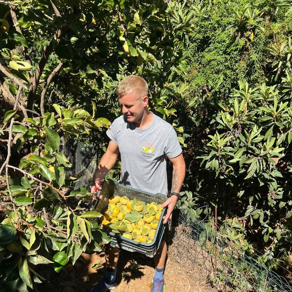 Julian betreibt gemeinsam mit seinem kleinen Team eine Finca bei Almuñécar an der südspanischen Küste. Dort baut er mit viel Sorgfalt exotische Bio-Früchte wie Cherimoyas, Mangos, Avocados, Drachenfrüchte und Passionsfrüchte an – komplett naturnah und ohne synthetische Dünger.