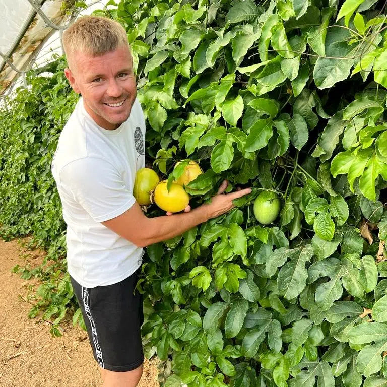 Julian betreibt gemeinsam mit seinem kleinen Team eine Finca bei Almuñécar an der südspanischen Küste. Dort baut er mit viel Sorgfalt exotische Bio-Früchte wie Cherimoyas, Mangos, Avocados, Drachenfrüchte und Passionsfrüchte an – komplett naturnah und ohne synthetische Dünger.
