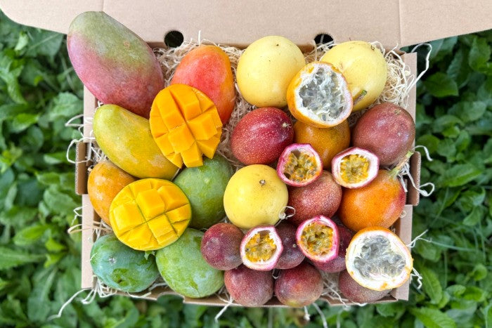 In dieser Box treffen zwei der spannendsten Fruchtwelten aufeinander: tropische Mangos und die Vielfalt der Passiflora.